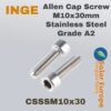 Allen Cap Screw M10x20mm Stainless Steel Grade A2 (CSSSM10x20)