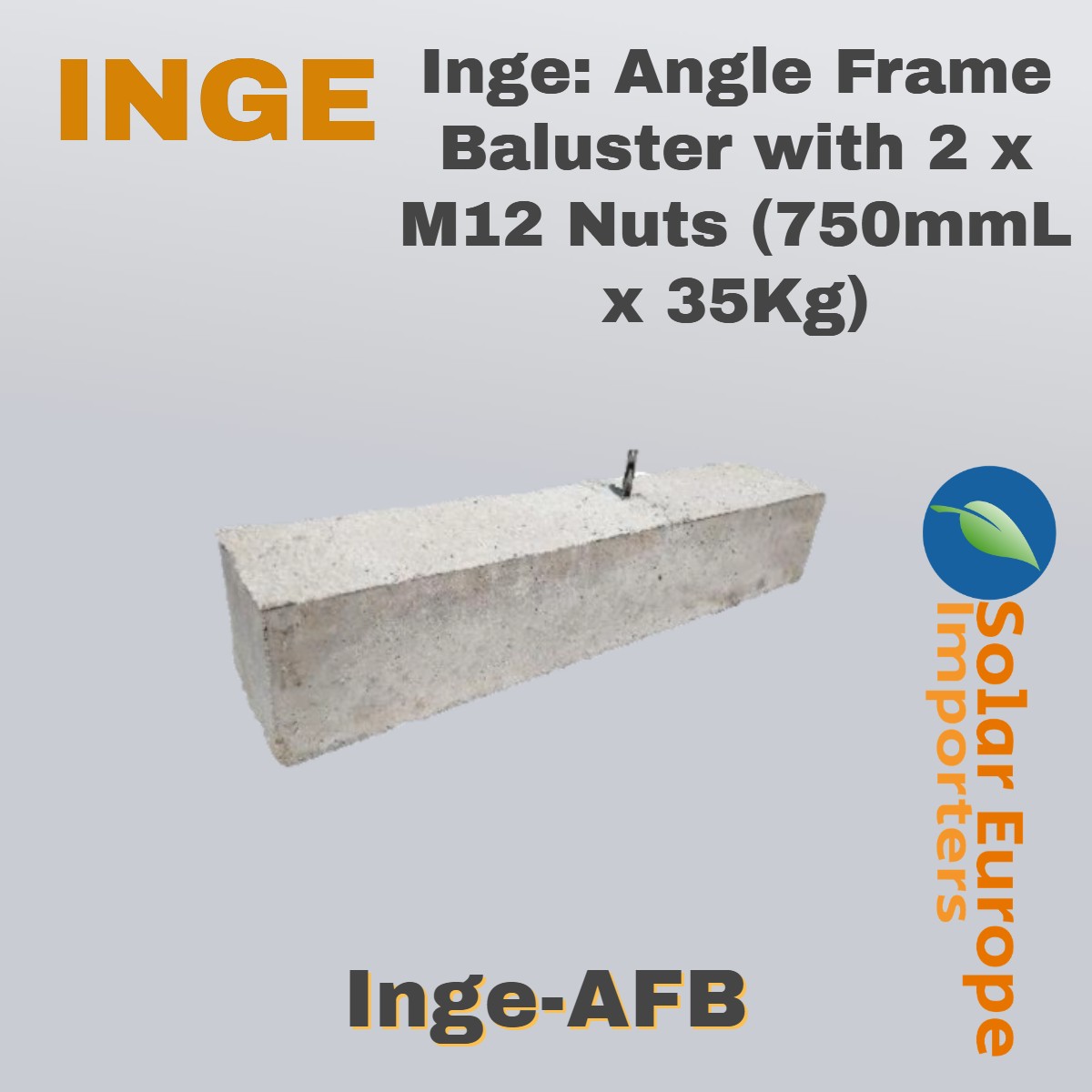 Inge: Angle Frame Baluster with 2 x M12 Nuts (750mmL x 35Kg) (Inge-AFB)